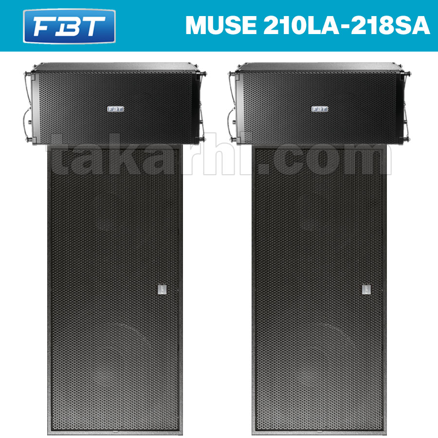 COMBO de parlantes activos Line Array FBT MUSE 210LA (de doble Agudo de 1» y doble medio de 10») con Subbajos FBT MUSE 218SA (doble bajo de 18») con potencia total de 19,600 Watts. Incluye un total de 4 parlantes.