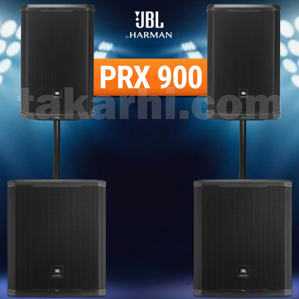 Paquete de audio que incluye 4 parlantes activos: Dos (2) Parlantes Full Rango JBL PRX 915 (de 15 pulgadas)+ Dos (2) Parlantes Subbajo activo JBL PRX 918XLF (de 18 pulgadas) y atriles para ambos parlantes. Potencia total: 8,000 Watts