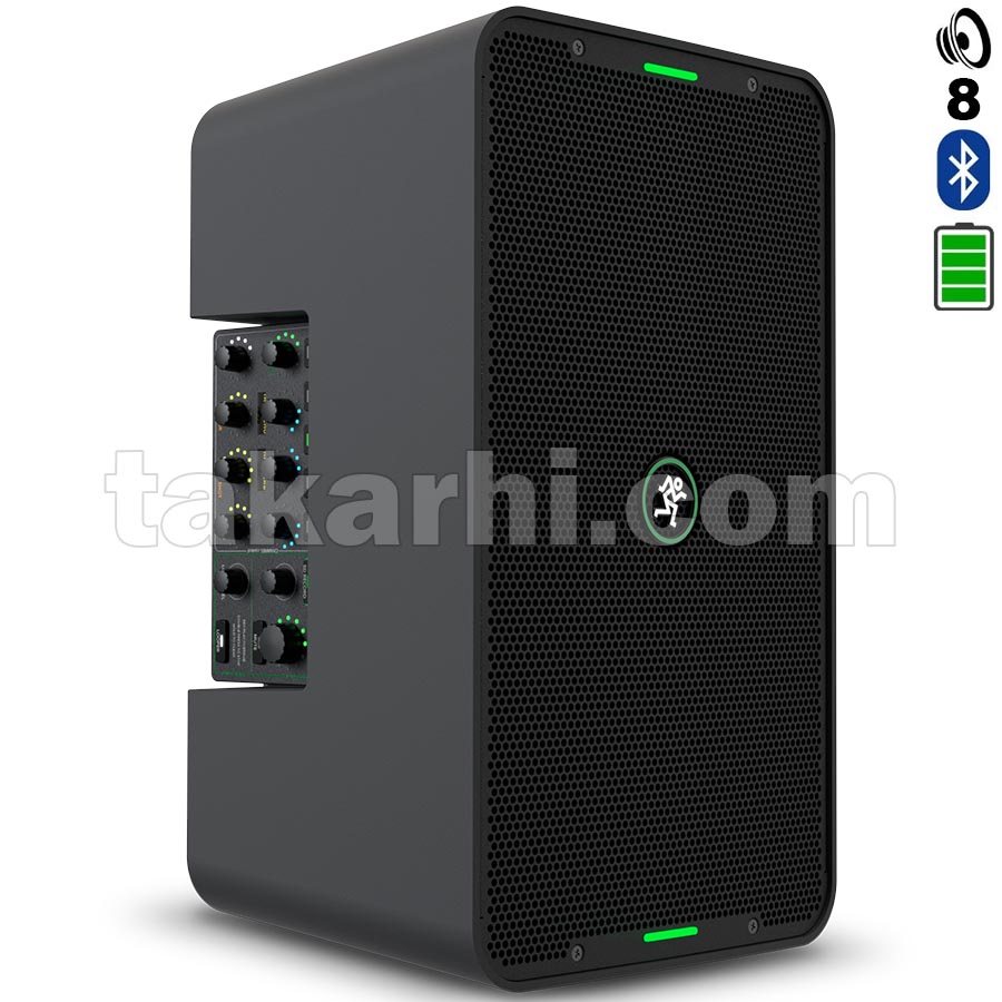 Parlante Activo de 8» pulgadas y agudo de 1» con Batería Recargable con efectos, potencia 400 Watts pico con Bluetooth. 6 Canales (2 XLR, 4 PLUG), 1 Salida balanceada XLR. Puerto microSD, interfase USB-C. Con opción de mezcladora extraíble para un mejor control de intérpretes durante su uso. Ideal para músicos para presentaciones en vivo en aforo mediano.