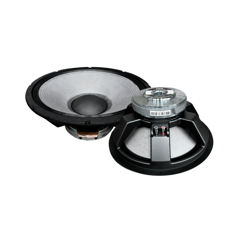 Altavoz de Férrita de 18 pulgadas, VC (bobina de voz) de 4 pulgadas, potencia: 2,400 Watts pico, 1,200 Watts RMS, impedancia: 8 Ohms, frecuencia: 38 Hz – 1.5 kHz.